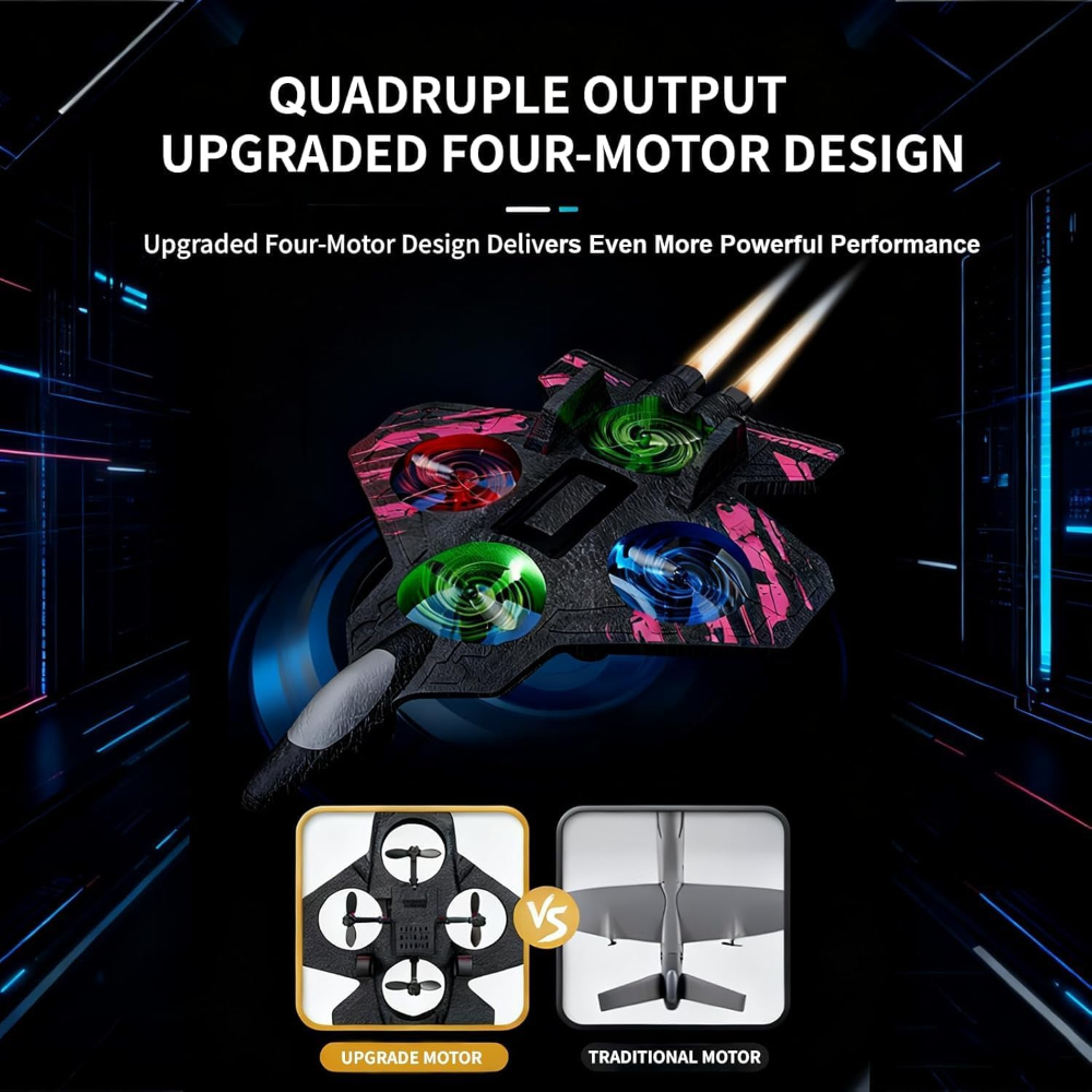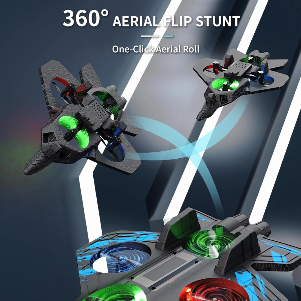 Equipped with built-in LED lights, the aircraft remains visible during low-light conditions, adding excitement and improved control. The simple remote control system supports smooth flying, while automated takeoff and landing functions reduce the learning curve and help prevent hard landings.